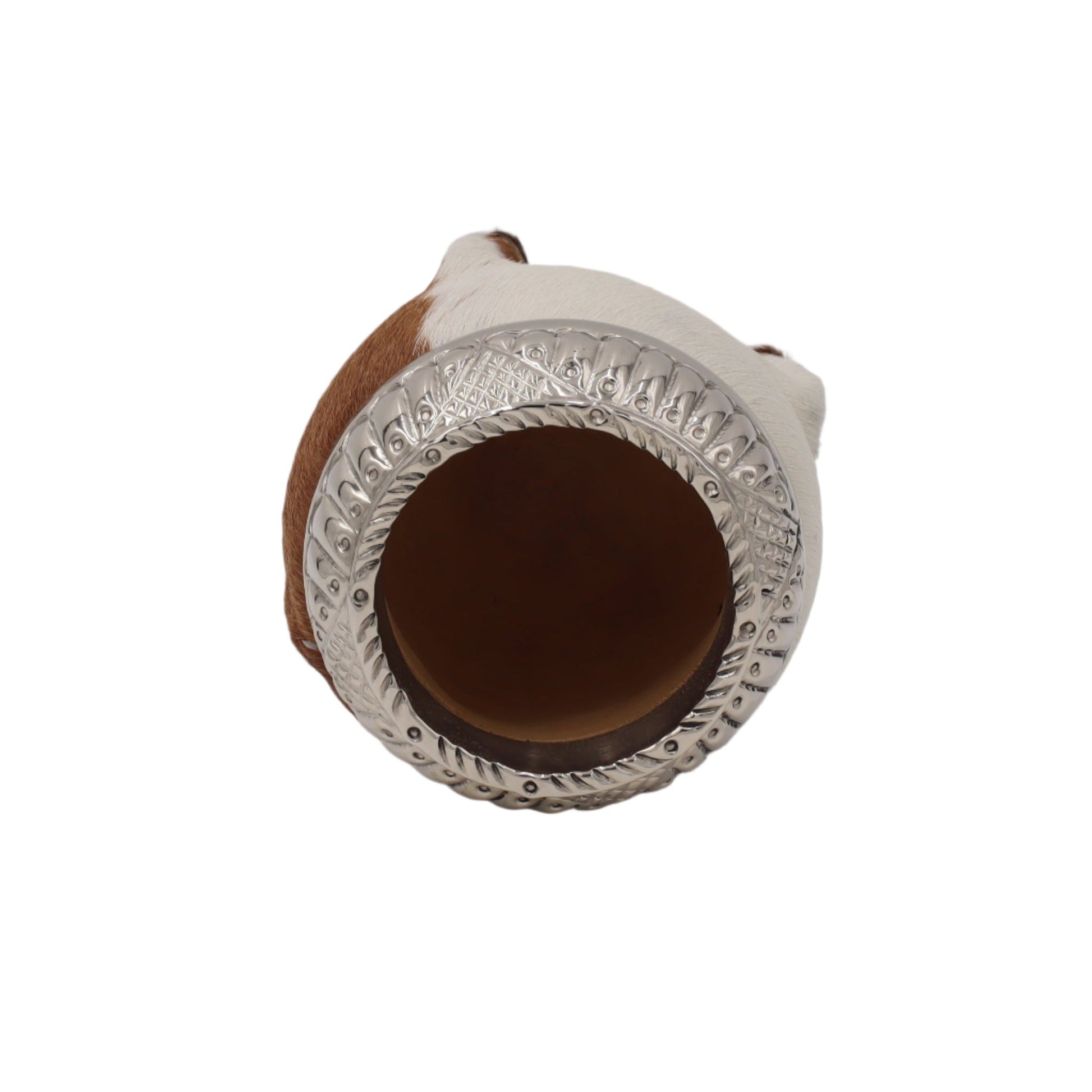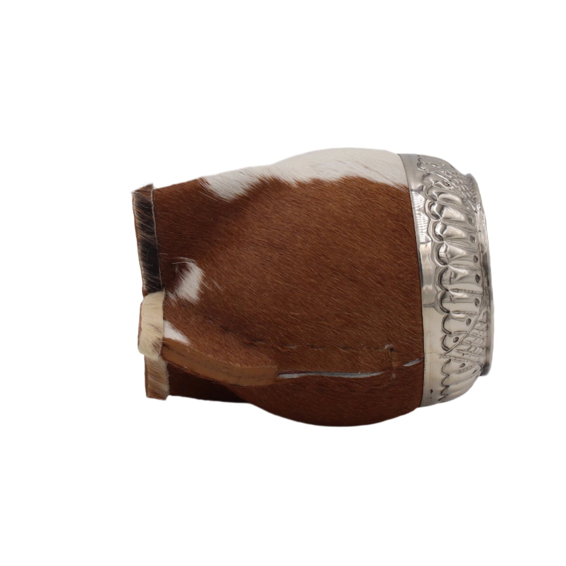 Torpedo Exclusif (poil véritable) — Cuir à poil naturel, virole alpaca d’orfèvre, calebasse sélectionnée; stabilité renforcée et contenance 250–260 ml, série limitée.