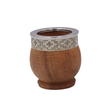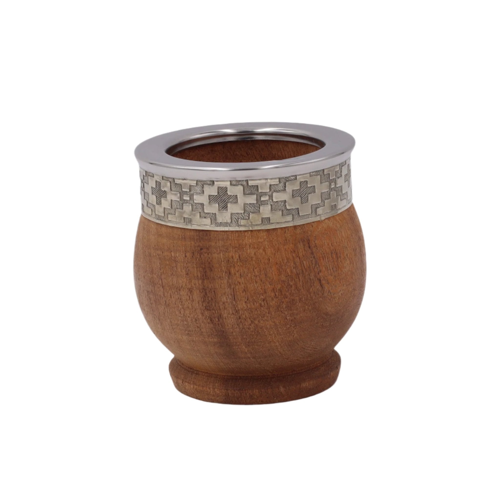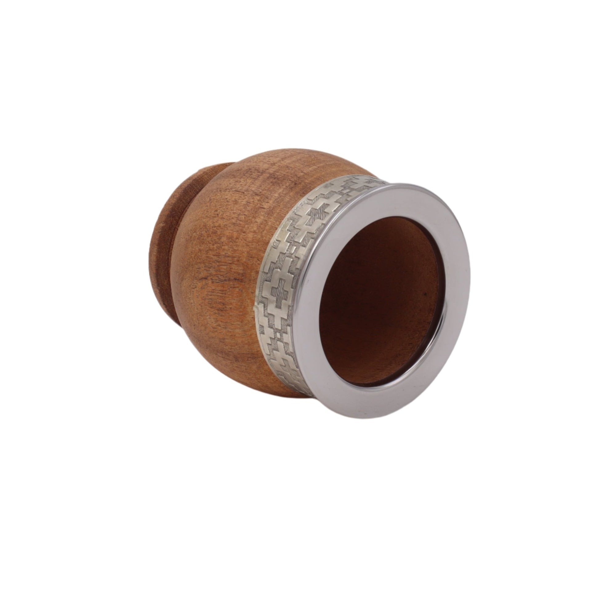 Mate Impérial Barril (caroubier) 260 ml — Bois de caroubier, virole + bande ciselée en alpaca ; pièce artisanale élégante