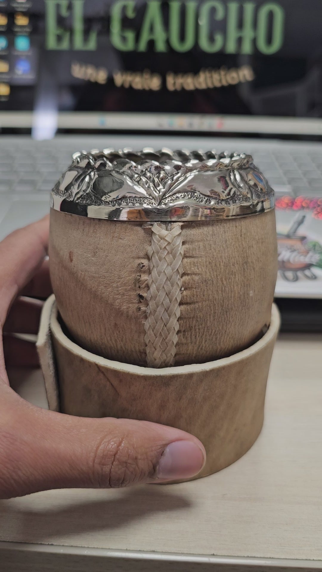 Torpedo Tiento Exclusif en cuir brut avec bombilla, virole en alpaca ciselée.